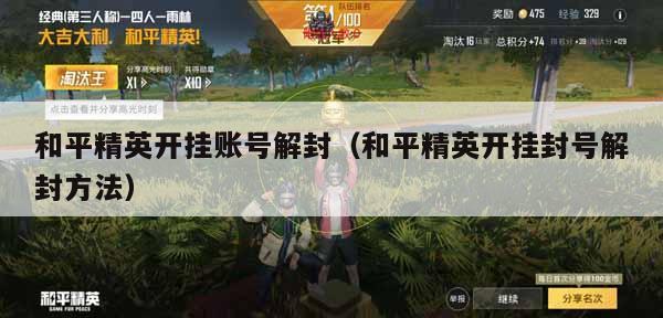 和平精英外挂4、一般只有“开挂”,账号才会被封。如果玩家是使用第三方软件的话,那想解封可能就没有什么办法了,毕竟对于这种行为,游戏都是坚决抵制的,玩家被封号也就不稀奇了。