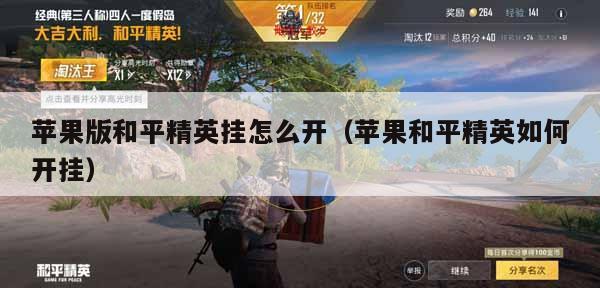 和平精英外挂和平精英挂怎么开教程如下:和平精英开科技,需要拿到测瞄准镜,并点击切换上测瞄准镜,便可以开科技了。工具/原料:华为p40、emui和平精英0 进入局内 登录游戏后进入局内开始游戏。