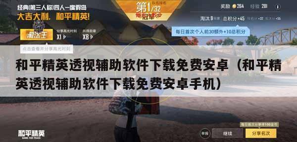 和平精英外挂3、如何下载和平精英作弊菜单步骤是:安装好和平精英辅助器(免费)安卓软件进入主界面。选择软件选中【和平精英手游】,点击【安装辅助】。切换到【我的游戏】选中【和平精英】开始游戏。